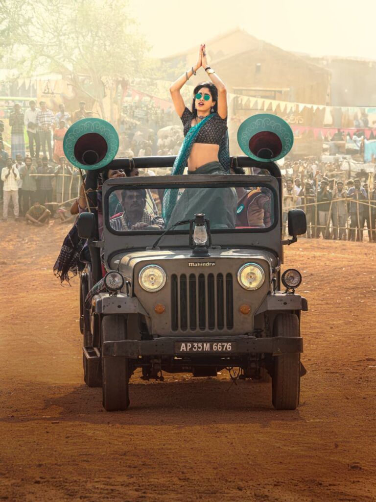 ಇದೀಗ ‘ಪೆದ್ದಿ’ ಚಿತ್ರತಂಡ ಜಾನ್ವಿ ಕಪೂರ್ ಅವರ ಪಾತ್ರದ ಫಸ್ಟ್ ಲುಕ್ ಅನ್ನು ಬಿಡುಗಡೆ ಮಾಡಿದೆ. ‘ಪೆದ್ದಿ’ ಚಿತ್ರದಲ್ಲಿ ನಟಿ ಜಾನ್ವಿ ಕಪೂರ್ ‘ಅಚ್ಚಿಯಮ್ಮ’ ಪಾತ್ರದಲ್ಲಿ ಅಭಿನಯಿಸುತ್ತಿದ್ದಾರೆ. ಸದ್ಯ ಬಿಡುಗಡೆಯಾಗಿರುವ ‘ಪೆದ್ದಿ’ ಸಿನೆಮಾದ ಫಸ್ಟ್ ಲುಕ್ ಪೋಸ್ಟರ್ ನಲ್ಲಿ ಜಾನ್ವಿ ಕಪೂರ್ ಬೋಲ್ಡ್ ಲುಕ್ ನಲ್ಲಿ ಕಾಣಿಸಿಕೊಂಡಿದ್ದಾರೆ. ಜೀಪಿನ ಮೇಲೆ ನಿಂತು ತಲೆಯ ಮೇಲೆ ಕೈಗಳನ್ನು ಎತ್ತಿಹಿಡಿದು ಕ್ಯಾಮೆರಾಗೆ ಪೋಸ್ ಕೊಟ್ಟಿದ್ದಾರೆ.