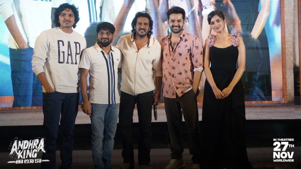 ಬೆಂಗಳೂರಿನಲ್ಲಿ ನಡೆದ ‘ಆಂಧ್ರ ಕಿಂಗ್ ತಾಲೂಕ’ ಚಿತ್ರದ ಟ್ರೇಲರ್ ಬಿಡುಗಡೆ ಕಾರ್ಯಕ್ರಮದಲ್ಲಿ ನಟ ರಿಯಲ್ ಸ್ಟಾರ್ ಉಪೇಂದ್ರ ಅವರೊಂದಿಗೆ ತೆಲುಗು ನಟ ರಾಮ್ ಪೋತಿನೇನಿ, ನಟಿ ಭಾಗ್ಯಶ್ರೀ ಬೋರ್ಸೆ ಸೇರಿದಂತೆ ಅನೇಕ ಕಲಾವಿದರು ಹಾಜರಿದ್ದರು.