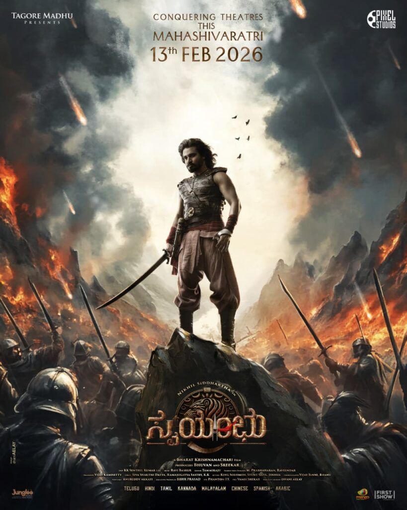 ತೆಲುಗು ಚಿತ್ರರಂಗದ ಉದಯೋನ್ಮುಖ ನಟ ನಿಖಿಲ್ ಸಿದ್ದಾರ್ಥ್ ನಟಿಸುತ್ತಿರುವ ಬಹು ನಿರೀಕ್ಷಿತ ಸಿನೆಮಾ ‘ಸ್ವಯಂಭು’. ಈಗಾಗಲೇ ತನ್ನ ಟೈಟಲ್ ಹಾಗೂ ಮೇಕಿಂಗ್ ಮೂಲಕ ತೆಲುಗು ಚಿತ್ರರಂಗದಲ್ಲಿ ಒಂದಷ್ಟು ಕುತೂಹಲ ಹೆಚ್ಚಿಸಿರುವ ಈ ಚಿತ್ರದ ಬಿಡುಗಡೆ ದಿನಾಂಕ ಘೋಷಣೆಯಾಗಿದೆ. ಮುಂಬರುವ ಮಹಾಶಿವರಾತ್ರಿ ಅಂದರೆ, 2026 ಫೆಬ್ರವರಿ 13ಕ್ಕೆ ವಿಶ್ವಾದ್ಯಂತ ‘ಸ್ವಯಂಭು’ ಚಿತ್ರಮಂದಿರಗಳಿಗೆ ಎಂಟ್ರಿ ಕೊಡಲಿದೆ.